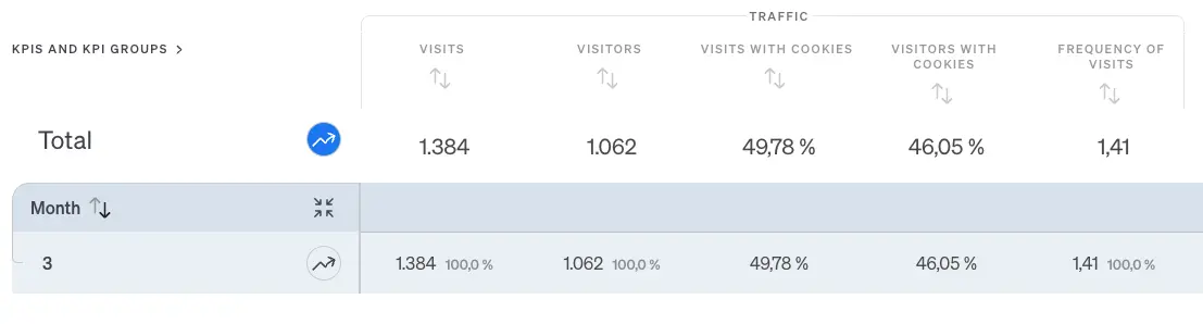 The basic Month & Year report, for example, can be called up to check this. If the proportion of visits with cookies is 100 percent, there is a need for action.