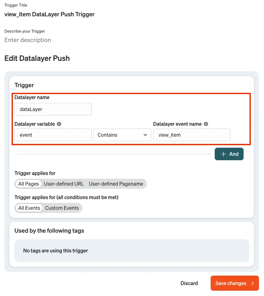 - Create a new trigger of the type “Datalayer-Push”.